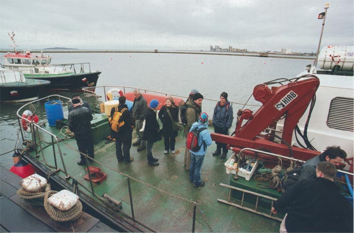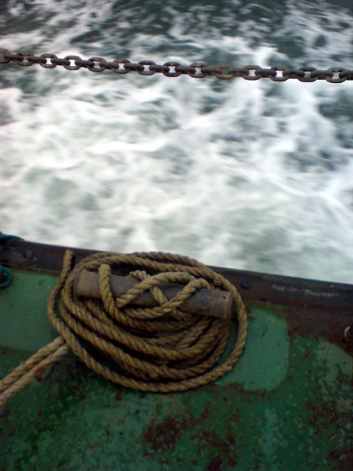 In December 2007 we performed on Inchmickery island off the coast of Edinburgh. We traveled to the island from Granton harbour on a boat which we chartered. 10 people made the crossing to see us play. Prior to the performance, we had made a 25-minute piece of music from recordings of the boat’s engine. The performance involved the audience listening to this music played through speakers on the boat while traveling to and from the island, and on portable mp3 players whilst on the island.