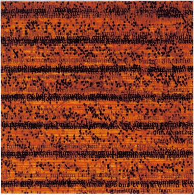 here for an image). Each of the sixteen inlays has a differerent mix of opacities between the layers to produce a unique image. Reverse is heavyweight white card, hand printed in black with the release details (click